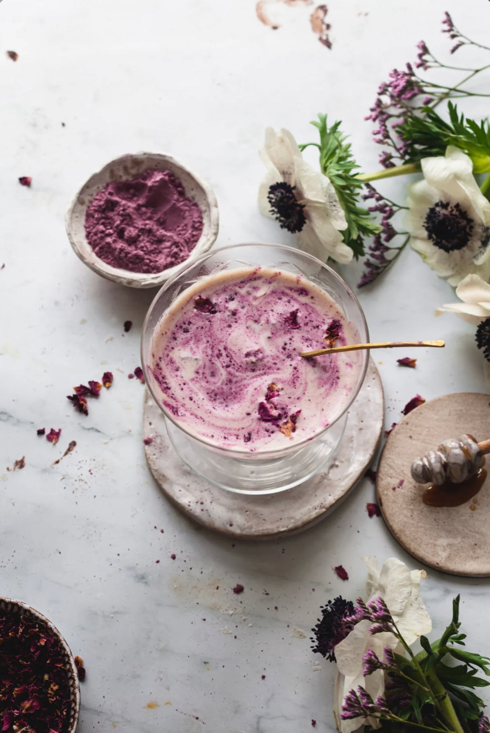 Ingredients: Rose Petals (Rosa centifolia), Hibiscus Flower (Hibiscus sabdariffa), and Maca Root (Lepidium meyenii).