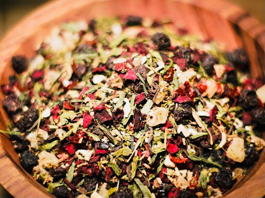 Ingredients: Sencha Green Tea, Beet Root, Yerba- Mate, Pu-her, Cordyceps and Reishi Mushrooms, Ashwagandha, Rose Hips, Dried Pineapples and Blueberries.
